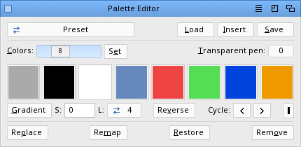 - Added the "Palette editor" tool for modifying, setting, or removing palettes