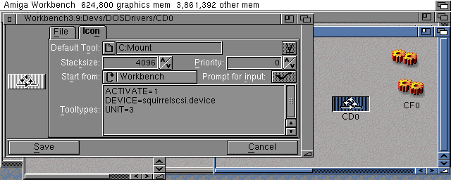 However, it appears that doing this only changes the 'CD0.info' file and not the mounlist of CD0 itself. Below is the mountlist viewed in DirectoryOpus. So you need to make sure that the bottom two lines are correct in something like DirectoryOpus as well. i.e.