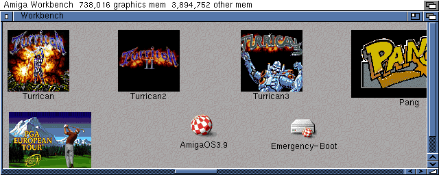 I guess I should finish off with a screengrab showing the icons of an inserted OS3.9 CD. And for newbies or those interested, the great game icons are what you get when you use the WHDLoad installers :-)