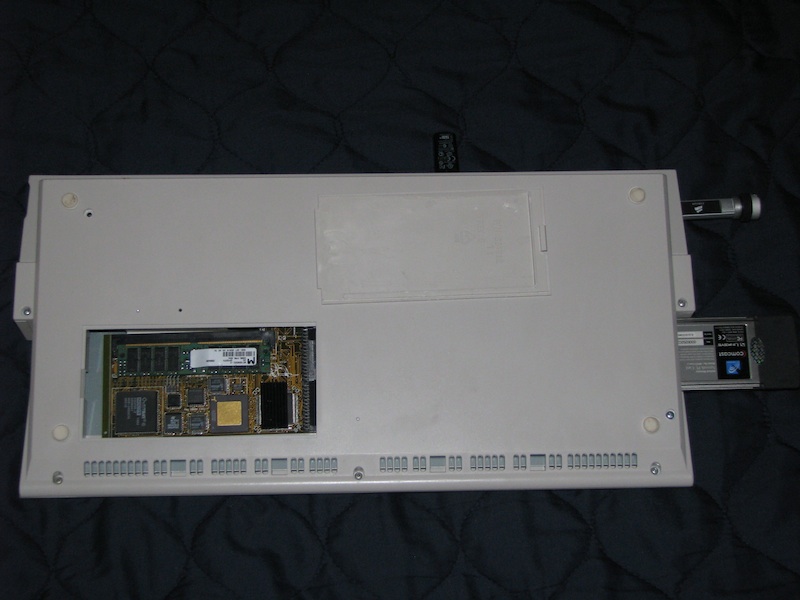 I'm trying to insert a new GVP-M Typhoon 32MB accelerator card into my A1200 via the bottom expansion door and am having problem fitting it in. I was able to connect it to the expansion port, but it looks like the card is too thick and I'm not able to close the bottom door. The SIMM card module protrudes about 1mm outside of the window. The card is sitting on top of the plastic guards that are inside of the expansion door.