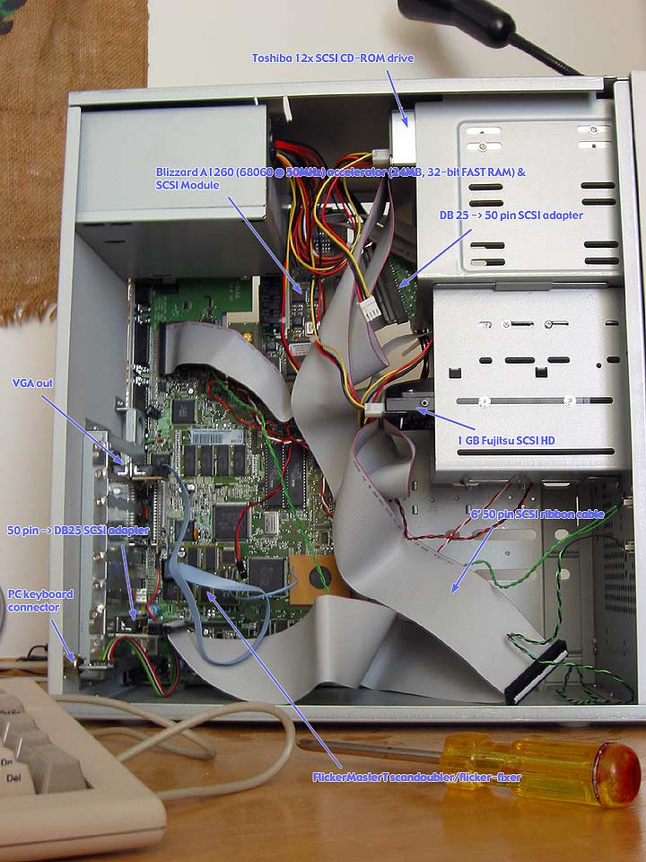 Looking at the A1200 motherboard from above, with the rear connectors at the top, and the front edge at the bottom: